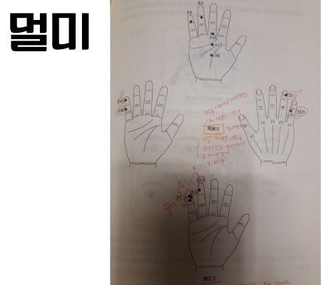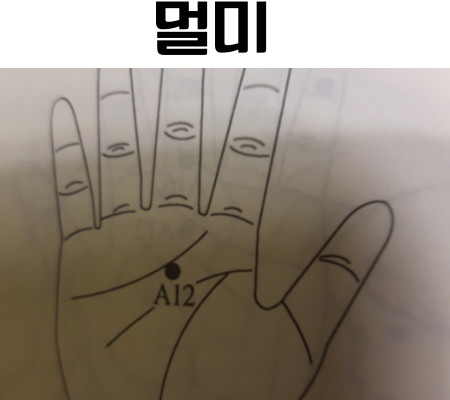 A8, A12, A16을 수지침으로 자극을 합니다. 이것을 약 4-5일간 1회 20-30분씩 수지침으로 자극하여 주면 차멀미를 하지 않습니다.