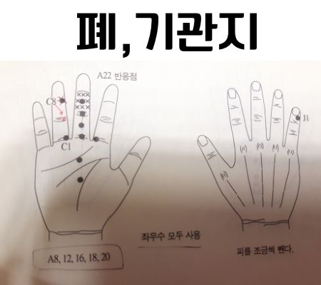 인후, 편도선염이 있을 때는 J1에 사혈(피를 빼 주는 것)을 해 주시고, 중지의 A22 주위에 수지침을 꽂거나 서암봉을 붙이면 효과가 좋습니다.